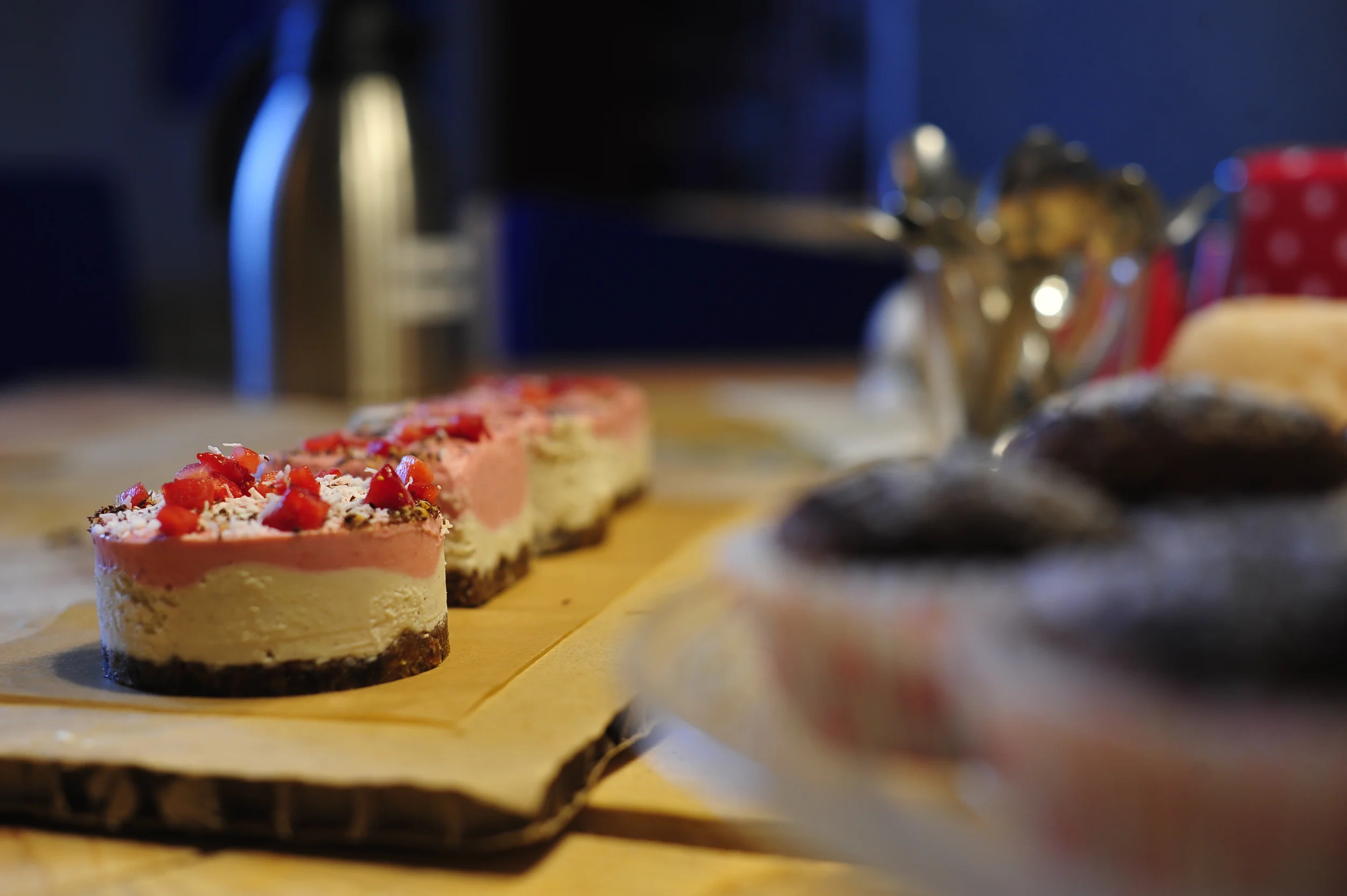 inside the and smooth with a spatula. Add the raspberries to the remaining filling and blend