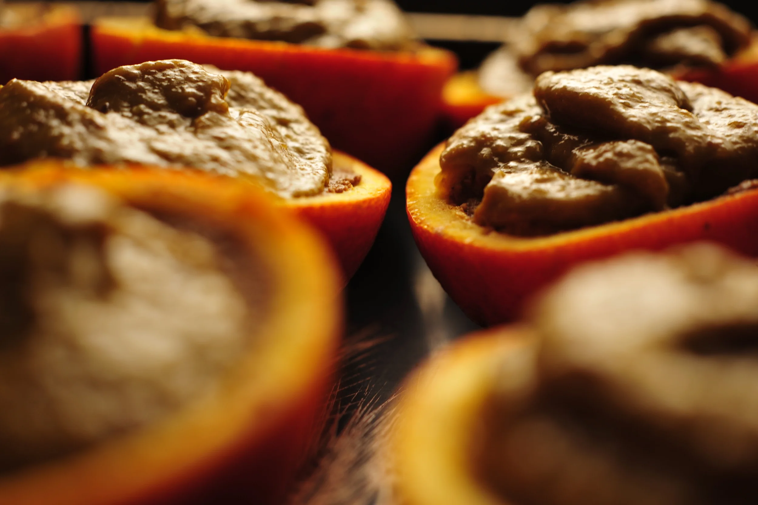 Combine all ingredients in a food processor and process until smooth, and fill halved hollowed out oranges.